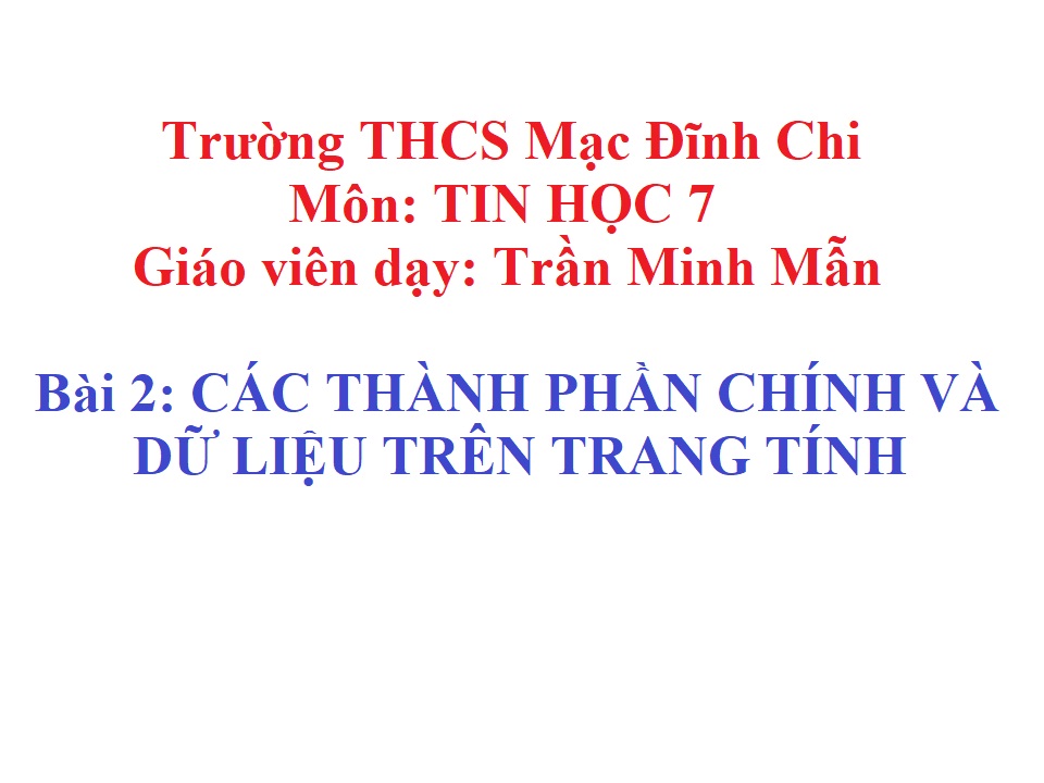 Bài 2: CÁC THÀNH PHẦN CHÍNH VÀ DỮ LIỆU TRÊN TRANG TÍNH