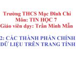 Tin 7. Bài 2: Các thành phần chính và dữ liệu trên trang tính