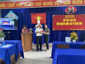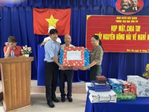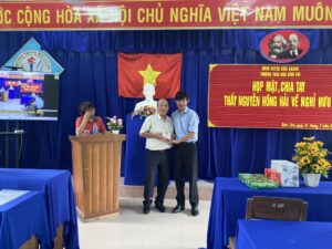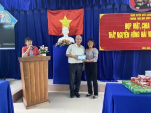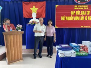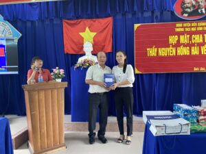 Muốn còn lại một chút gì để thương, để nhớ, Thầy gửi đến trường và nhà trường, Công đoàn, đại diện các tổ cũng tặng thầy những món quà lưu niệm ấp đầy tình cảm.