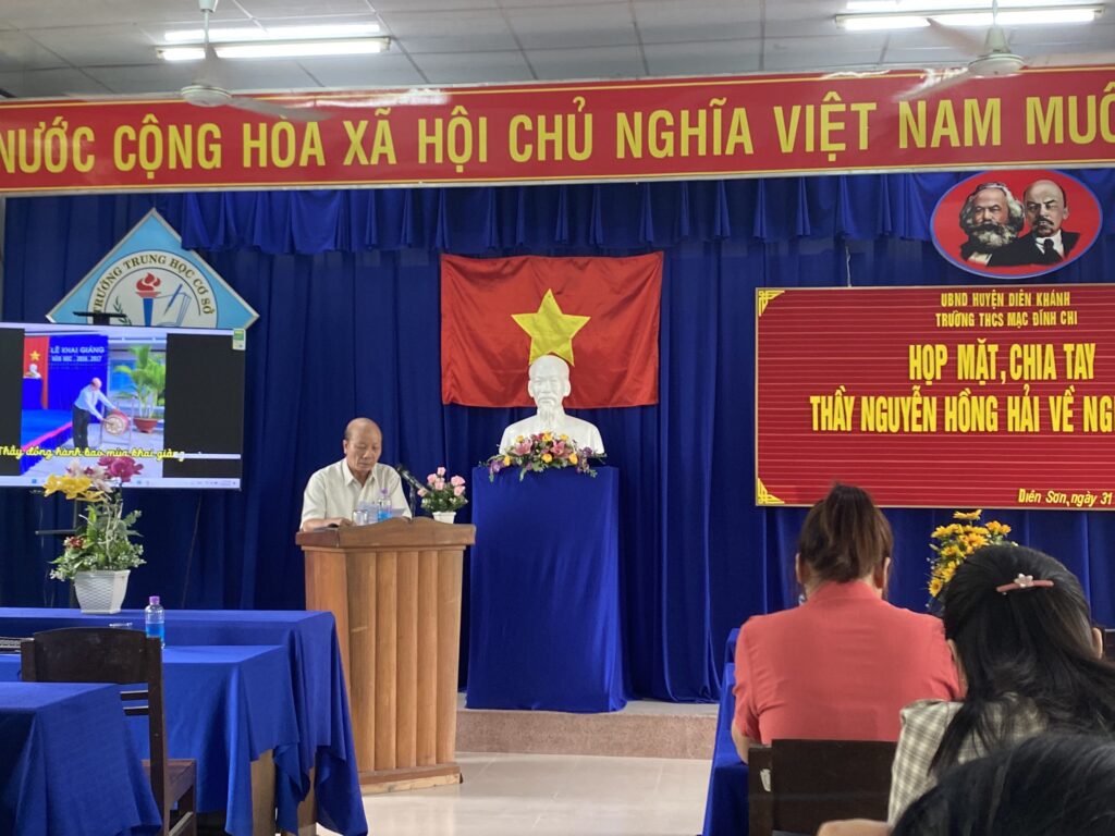 Vào lúc 7h30 phút, ngày 31/07/2023 trường THCS Mạc Đĩnh Chi long trọng tổ chức buổi gặp mặt chia tay với Thầy Nguyễn Hồng Hải – nguyên Hiệu trưởng nhà trường về nghỉ hưu theo chế độ.