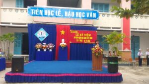 Buổi lễ kỉ niệm bắt đầu bằng lễ chào cờ trang trọng. Sau đó, cô Đặng Thị Hồng Phượng – Phó hiệu trưởng nhà trường báo cáo sơ kết thi đua đợt 1 và phát động thi đua đợt 2. Cô Nguyễn Thị Hoàng My ôn lại cho học sinh ý nghĩa ngày Hiến chương Nhà giáo Việt Nam.