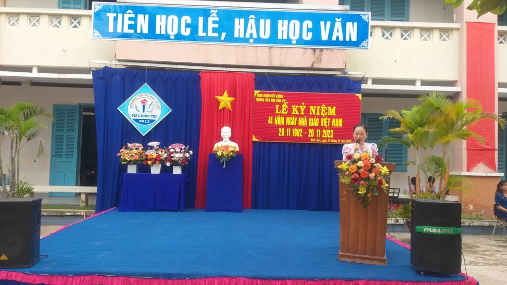 Tháng 11 về trong không khí hân hoan của cả nước hướng về ngày Nhà giáo Việt Nam, ngày mà cả xã hội với tấm lòng trân trọng biết ơn và tôn vinh công lao cao cả đối với nhà giáo – những thầy cô như những người lái đò vẫn lặng lẽ đếm bước để đưa thế hệ trẻ cập bến tương lai. Để tri ân và để tỏ lòng biết ơn đối với những người đã dành trọn tuổi xuân cho sự nghiệp trồng người, vào lúc 7h00 Trường THCS Mạc Đĩnh Chi trang trọng tổ chức lễ kỉ niệm ngày Nhà giáo Việt Nam.