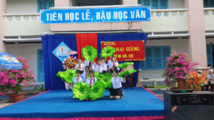 Không khí trở nên sôi động, náo nhiệt hơn bởi các tiết mục văn nghệ chào mừng năm học mới của các em học sinh.