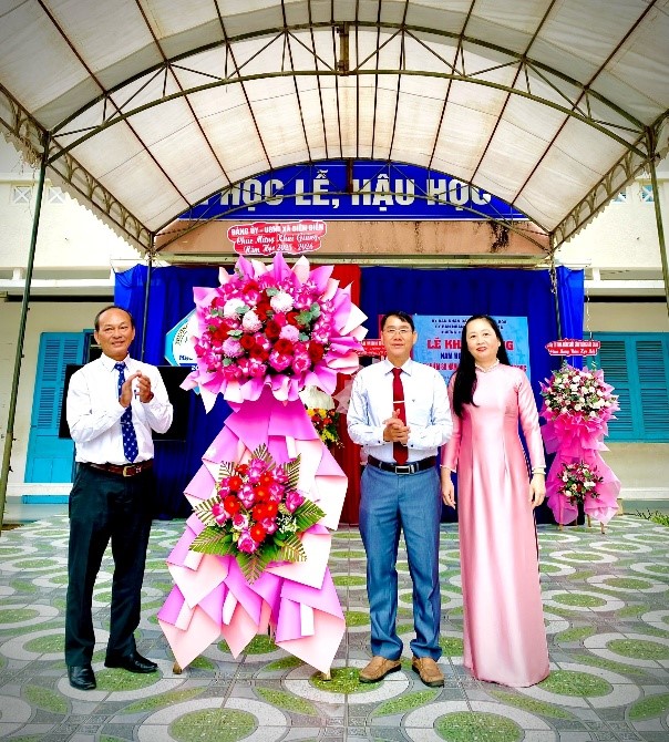 Tham dự Lễ Khai giảng với nhà trường, có đồng chí Phan Văn Trí – Phó Bí thư Đảng ủy, Chủ tịch UBND xã Diên Điền; đồng chí Nguyễn Thái Hiếu – Phó Chánh văn phòng HĐND&UBND xã Diên Điền đến dự và tặng hoa chúc mừng thầy trò trường nhân dịp Khai giảng năm học mới.