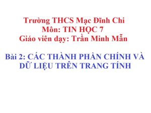 Bài 2: CÁC THÀNH PHẦN CHÍNH VÀ DỮ LIỆU TRÊN TRANG TÍNH Môn học: Tin [...]