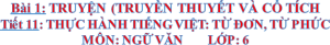 BÀI 1: TRUYỆN (TRUYỀN THUYẾT VÀ CỔ TÍCH) TIẾT 11: THỰC HÀNH TIẾNG VIỆT: TỪ [...]